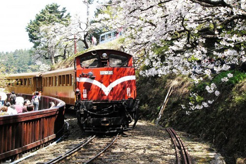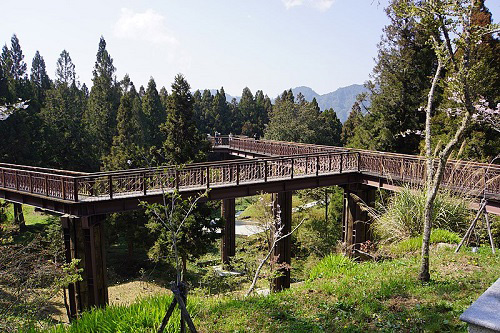 | 沼平公園標高2274公尺,是阿里山賞櫻景點中視野最遼闊的地方。由阿里山登山小火車祝山線下了沼平車站後,一眼望穿便是這個沼平自然公園,園內最高點甚至可以遠眺阿里山山景。沼平公園佔地廣大,種植了非常多種的高山植物,更是阿里山各色花種的大本營,幾乎是一年四季都可以來此賞花。除了春季隨處可見的山櫻花、吉野櫻之外,還有不少的山茶花、繡球花、森式杜鵑、黃馨和垂絲海棠…等等。甚至當滿山的山櫻花都凋謝之時,這裡還常會有晚熟的山櫻花悄悄露臉。除了賞花之外,沼平公園也是個賞鳥的好地方。而且園中造景相當詩情畫意,又開闢了步道、小橋供遊客玩賞,再加上沼平車站不時通過的阿里山火車,整個環境的重建可說是非常成功,值得一遊。 |