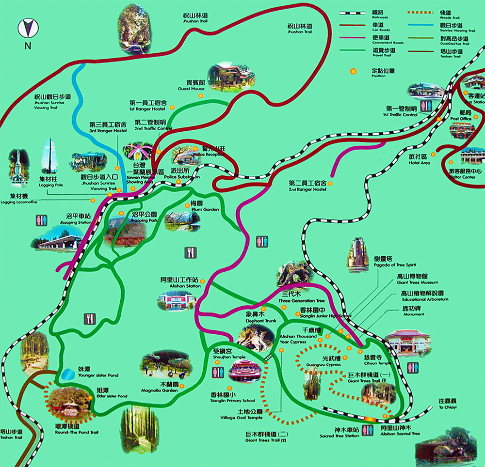 | 阿里山林業鐵路為臺灣唯一仍在營運的高山林業鐵路系統,亦是臺灣第一個國家級重要文化景觀,其各路線主要位於嘉義市與嘉義縣境內,但祝山線部分區段則位於南投縣信義鄉。該鐵路乃是日治時代為了將阿里山林場產出之林木向外輸送而建設;林場砍伐業務結束後,客運與觀光成為該鐵路的主要功能。 |